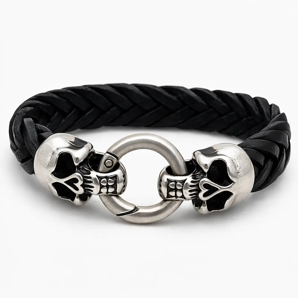 Pulsera Cuero Calavera Unisex – Espíritu Rebelde